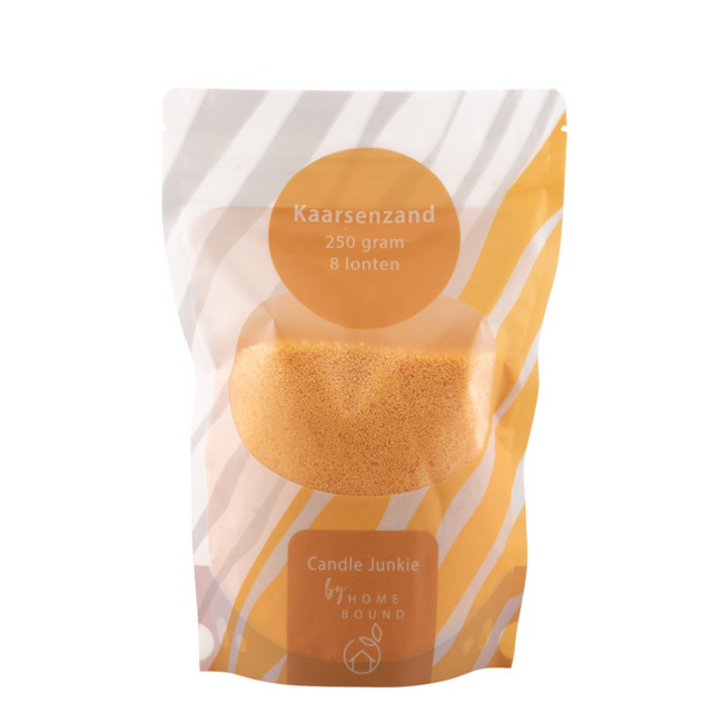 Met dit kaarsenzand met lonten maak je in een handomdraai je eigen kaars. Giet het zand in een hittebestendige schaal of glas, plaats een lont en steek ’m aan. Het resultaat? Een sfeervolle kaars met een speelse, natuurlijke uitstraling.