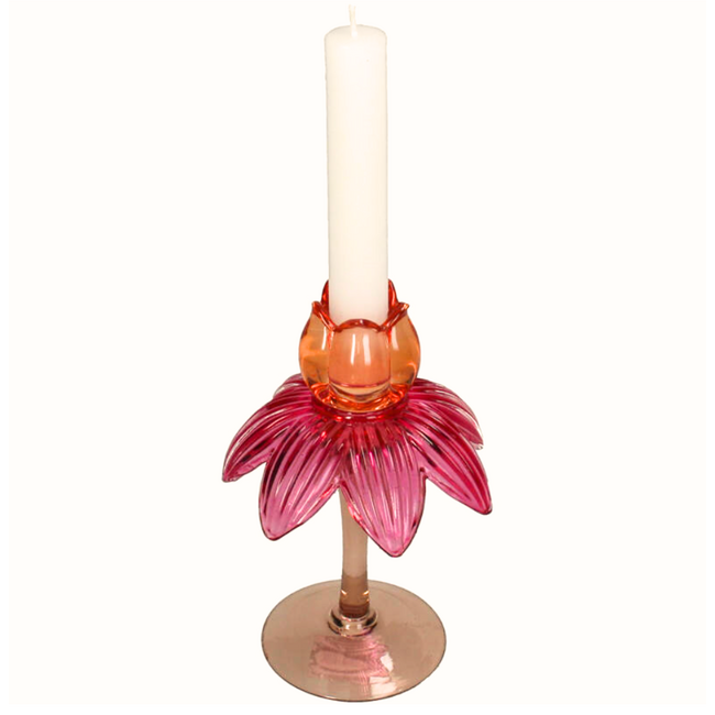 Geef je interieur een frisse en speelse uitstraling met deze kandelaar in palm bloem design! Het kleurrijke glas en de unieke vorm zorgen voor een vrolijke, tropische sfeer in elke ruimte.