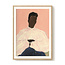 “Stillness” is een serene en stijlvolle kunstposter van Sacrée Frangine, waarin eenvoud en kracht samenkomen. Op een zachte zalmroze achtergrond is een zwarte vrouw afgebeeld in een elegante witte blouse met subtiele streepjes. De rustige houding en ingetogen kleuren stralen balans en harmonie uit.