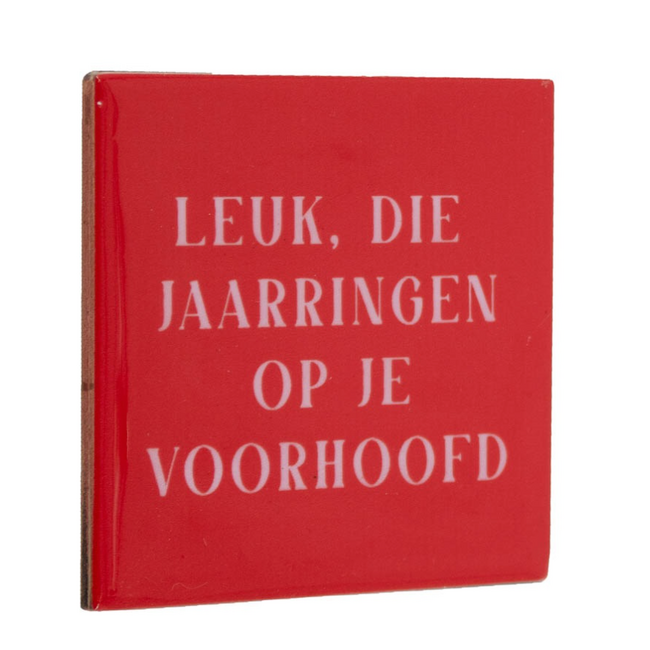 Voor een leuke prijs van €7,99 (11x11x0,5cm) haal je dit kleurrijke statement in huis! Het standaardje is apart verkrijgbaar.